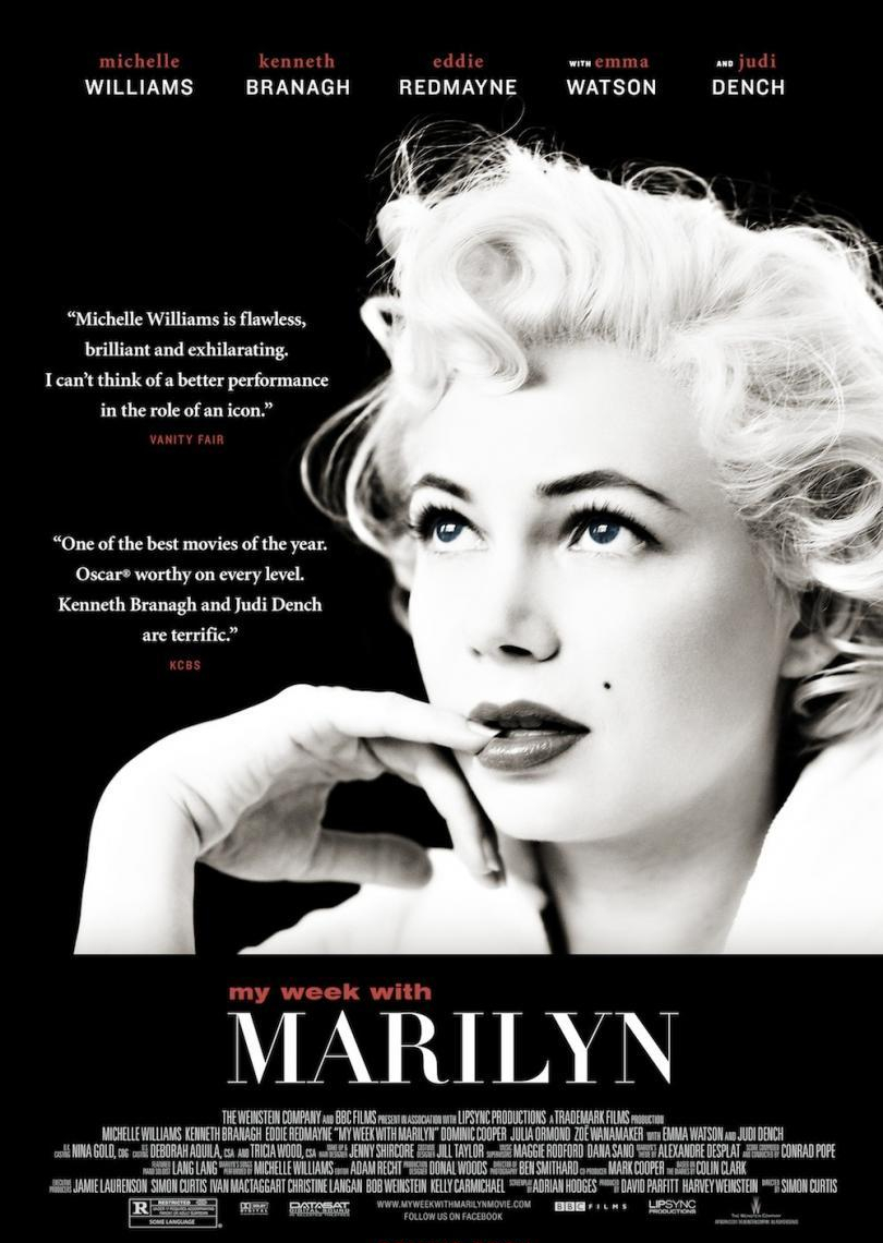 Monroe (Michelle Williams la caracterizó de manera brillante) al principio no parece adaptarse al papel y rehuye a aprender la letra de la obra. Arthur Miller -entonces su marido- vuelve a Norteamérica en mitad de esa película; en esas circunstancias Clark (encarnado en Eddie Redmayne) es el sostén de la actriz a la que se observa frágil y no del todo feliz.