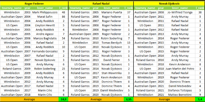 Por si fuera poco, en finales de GS Nole es quien en promedio superó a jugadores de más alto escalafón: