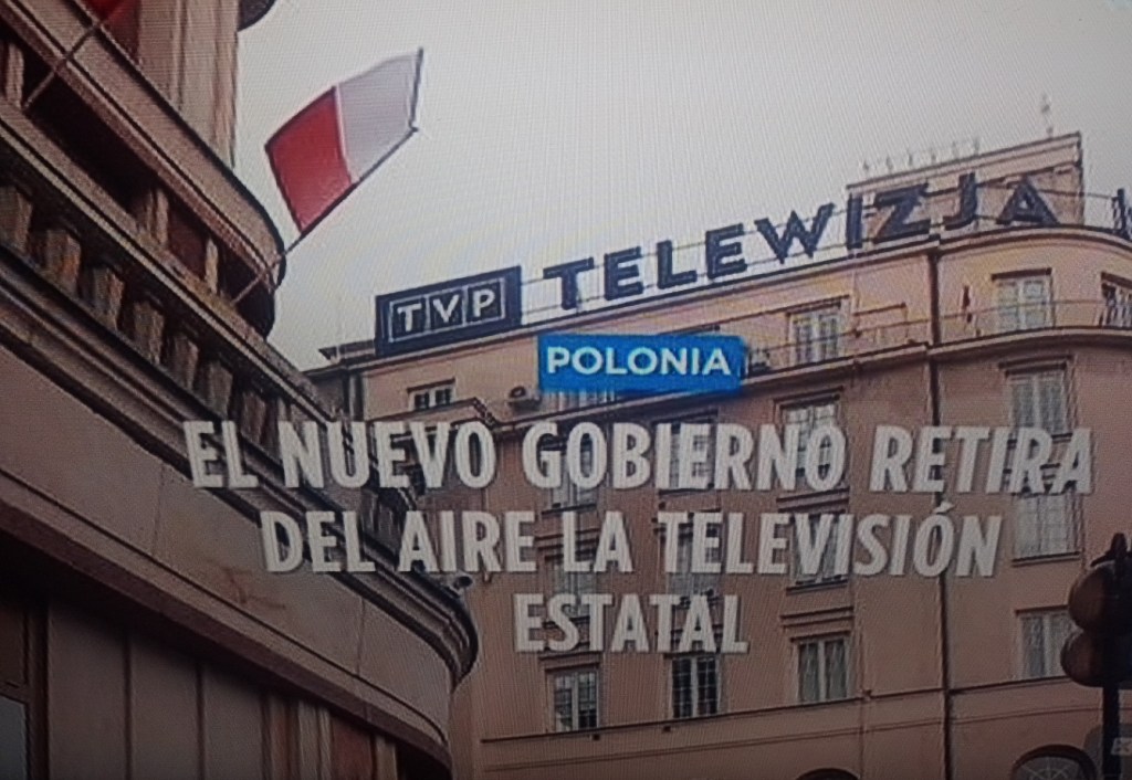 Como si hubiera sincronía en lados tan alejados del mundo, en Polonia, el nuevo gobierno suspendió las emisiones de la TV estatal por considerar que el anterior oficialismo hizo a través de dicho instrumento una «campaña constante de propaganda» en favor de sus consignas.
