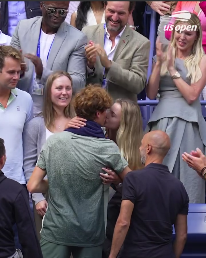 Eufórico Sinner, se abrazó con su grupo de trabajo y no ocultó su noviazgo con la rusa top 15 WTA, Anna Kaliniskaya, y recibió la ovación de sus fans con sus «vestimentas de zanahoria».