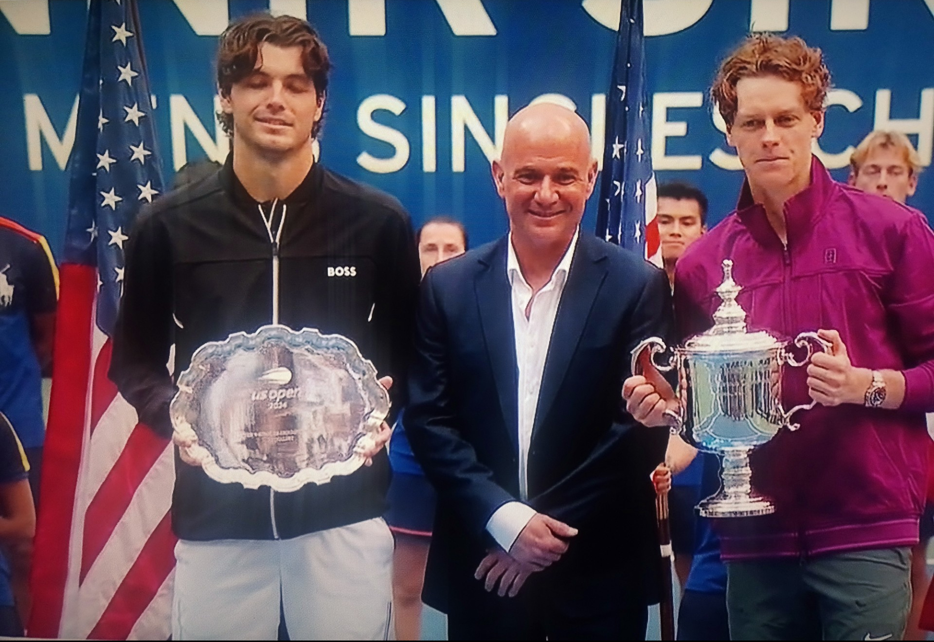 Lo cierto es que al momento de hablar con las raquetas, lo del pelirrojo de pelo enrrulado fue contundente. Yendo a las instancias decisivas, en cuartos de final superó amplliamente a Daniil Medvedev (campeón del US Open hace tres años y a quien Sinner le había ganado la última definición de Australia), en semifinales al británico de saque indomable Jack Draper, y en la final a Fritz, el californiano ilusionado con terminar con la sequía de no tener un campeón estadounidense en Flushing Meadows desde 2003 (el último fue Andy Roddick, quien estuvo presente en varios partidos de hombre y mujeres, junto a otra ex campeona, la en su momento jugadora prodigio Tracy Austin).