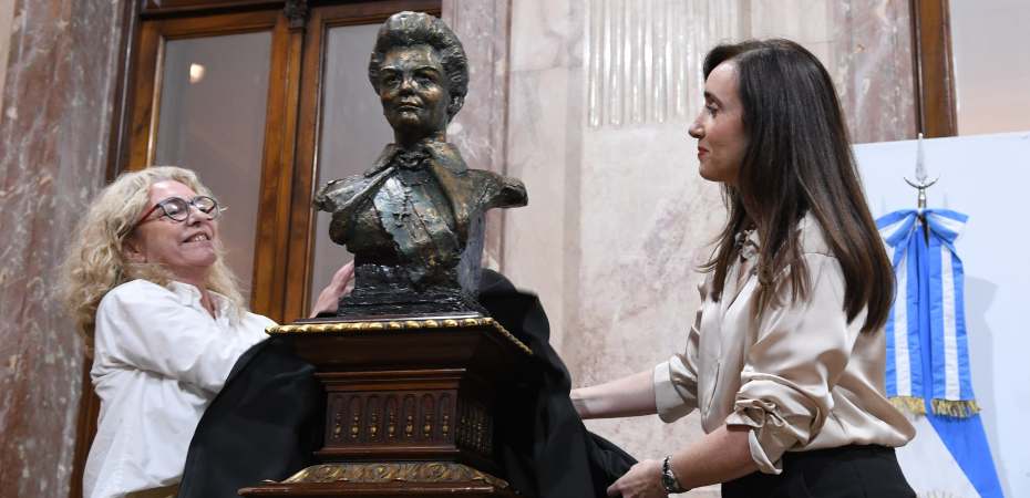 Villarruel presentó el busto en la Cámara alta acompañada de su asesora, la ex diputada nacional, Claudia Rucci cuyo padre, José Ignacio Rucci (asesinado por Montoneros apenas asumido Juan Perón su tercera presidencia) era jefe de la CGT y representaba la ortodoxia peronista que rivalizaba con la izquierda gremial, expresada por ejemplo en Agustín Tosco.