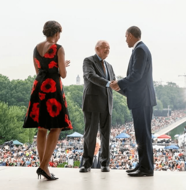 La figura de Carter (que se involucró como observador de la transparencia electoral en numerosas contiendas) fue ponderada especialmente por Barack Obama y su esposa Michelle, quienes expresaron un caluroso saludo de despedida rescatando el legado de Carter.