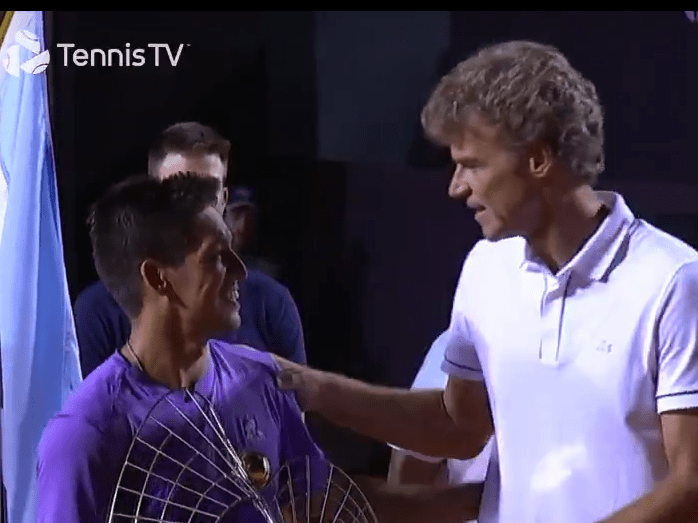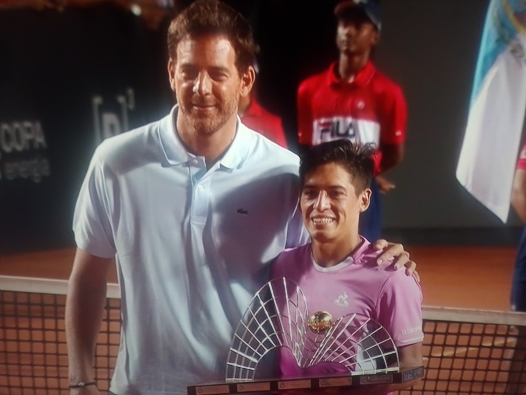 Baez se dio el lujo de recibir el trofeo de manos de Juan Martín Del Potro, como el año pasado se lo entregó Guga Kuerten (cuyo nombre lleva el estadio principal).